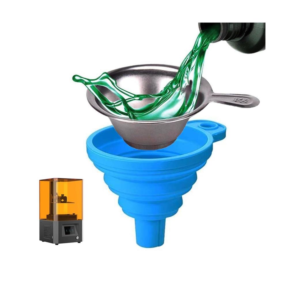 50 Stück SLA Papier Trichter Neue Metall UV Harz Filterbecher Silikon Pinzette SLA Spezialwerkzeug SLA Harz SLA kompatibel mit dedizierten SLA 3D Drucker Lieferumfang: 1 x UV-Harz-Filterbecher aus Metall. 1 x Trichter aus Silikon. Spezialwerkzeug SLA 1 x 2 Zoll 1 x gerade Nasenklammer. 1 x Pinzette mit Adlerspitze. Trichter aus Papier, 50 x 100 Maschen. Eigenschaften: Silikontrichter zum Verschütten von Harz in eine Flasche. Geeignet für alle gängigen Flaschen ab einer Halsbreite von 15 mm und natürlich für unseren Harzfilter. Denken Sie daran, immer einen Harzfilter zu verwenden, wenn Sie Harz in die Flasche geben. Andernfalls verunreinigen Sie Ihre Flasche durch fehlerhafte Drucke, gebrochene Medien und andere gehärtete Stücke. Dieser Silikontrichter ist leicht zu reinigen.
