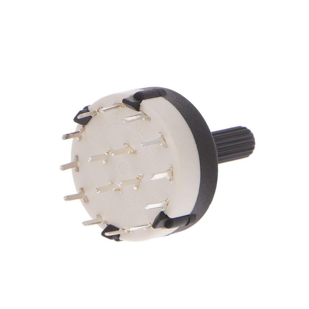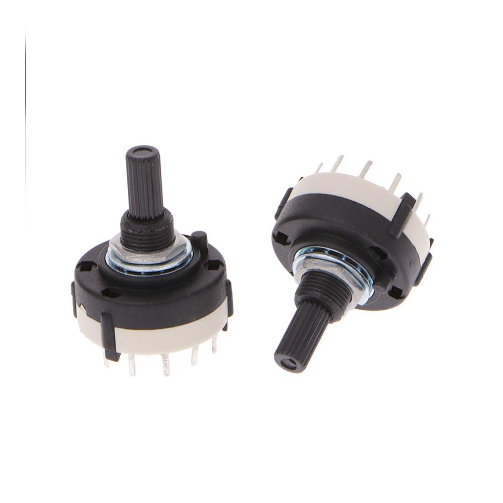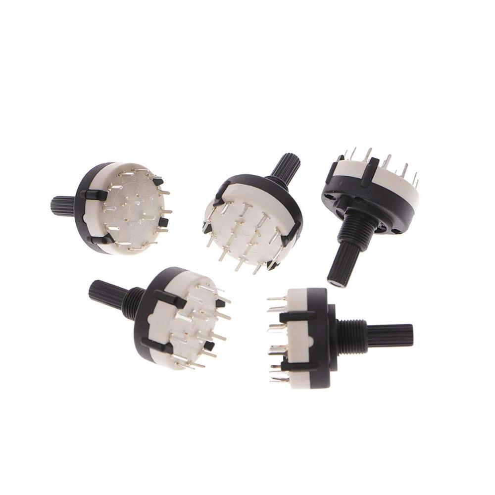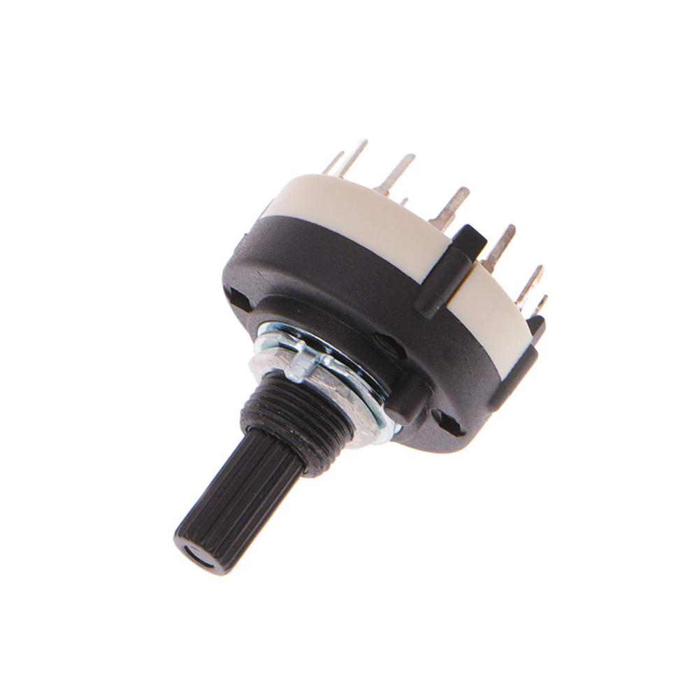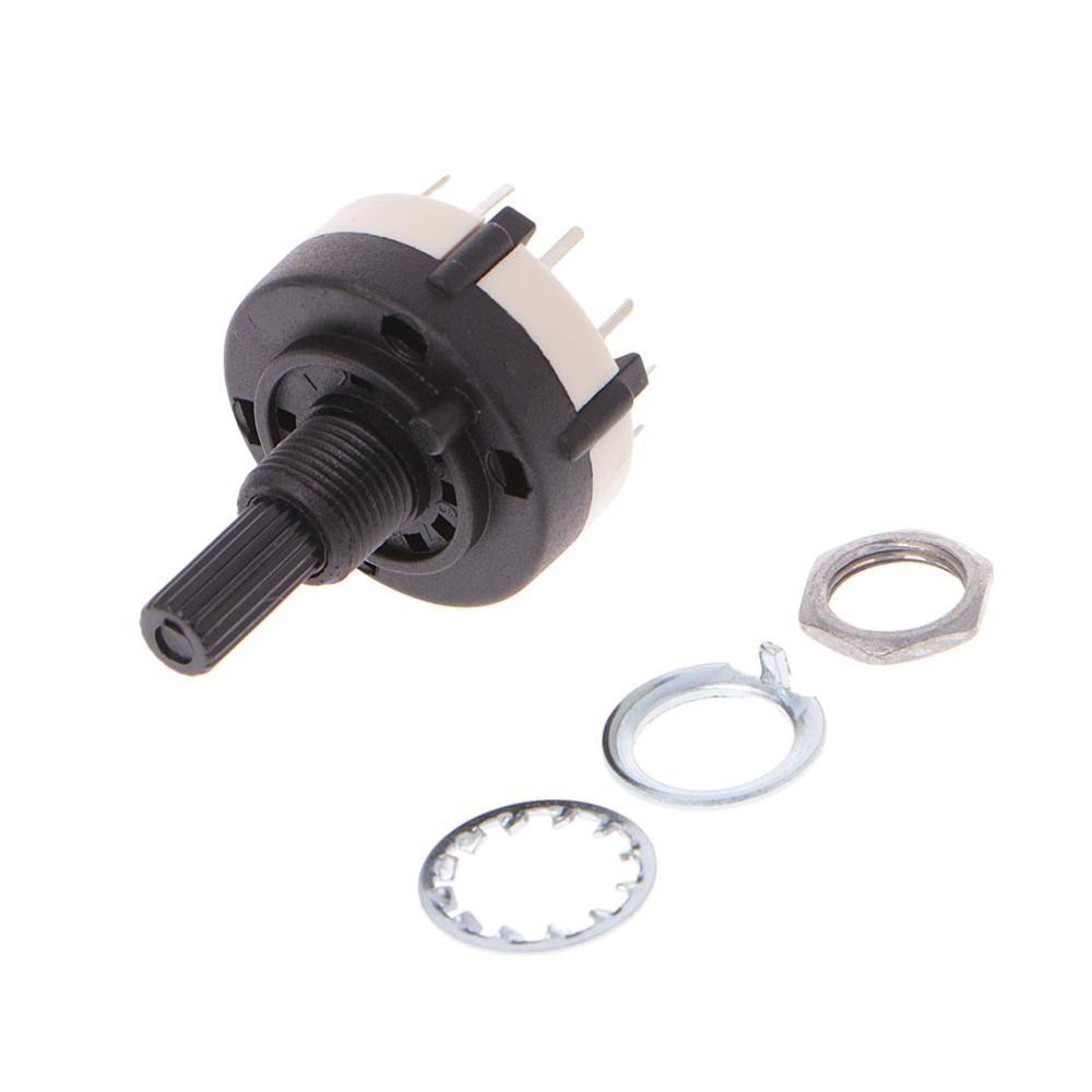 ❤4 Pole 3 Position Design, Keramikstruktur, leicht zu drehen. ❤Weit verbreitet in Radio, TV, Industriemaschinensteuerung oder anderen elektronischen Geräten. ❤Kontakttyp: 4 Pole 3 Positionen (4P3T), 1 Deck ❤Durchmesser des Montagelochs: 9 mm / 0,35 &34;&34; ❤Rotierender Wellendurchmesser: 6mm/0,24&34;&34; Hochwertige Wahlschalter: 5er Pack Drehschalter 4P3T
