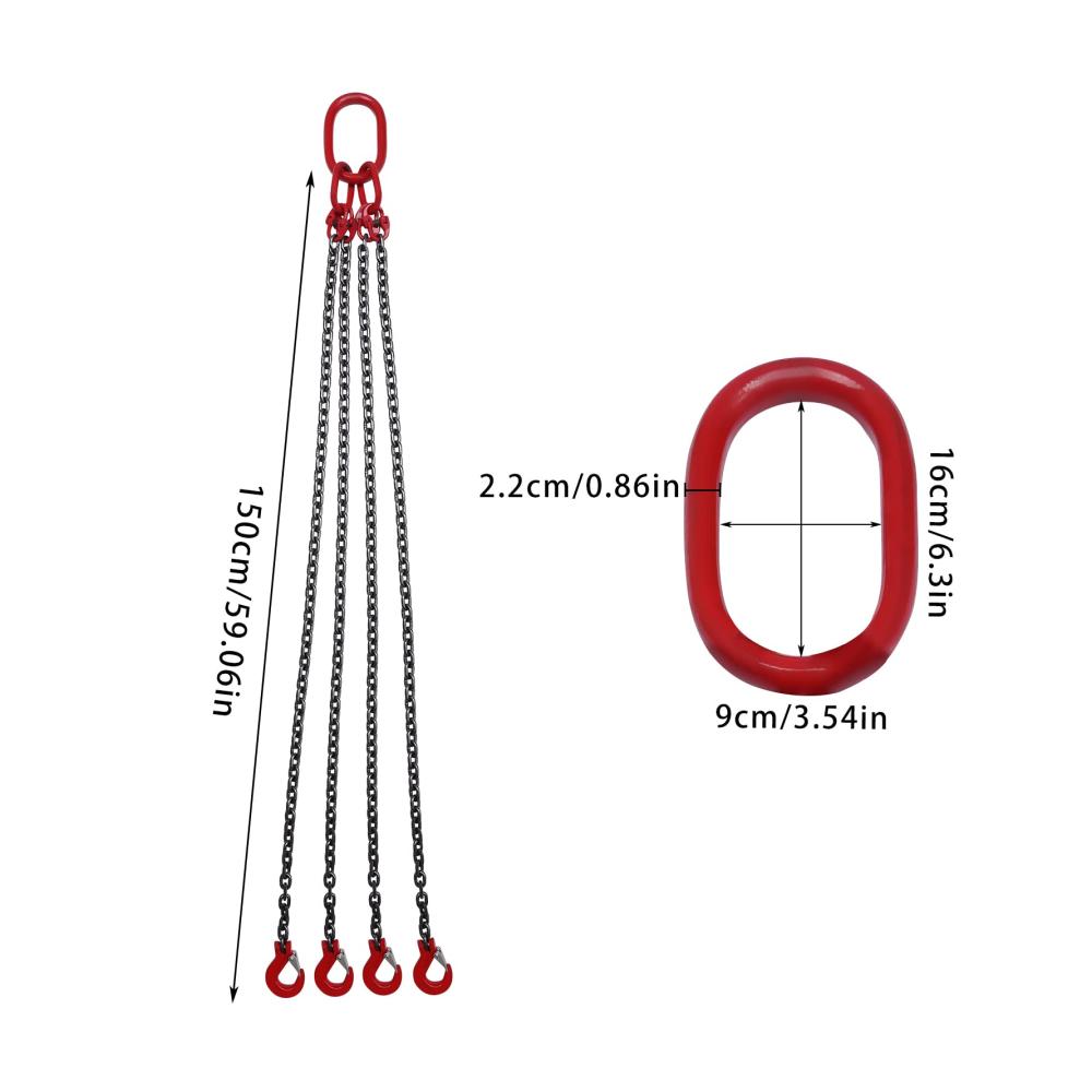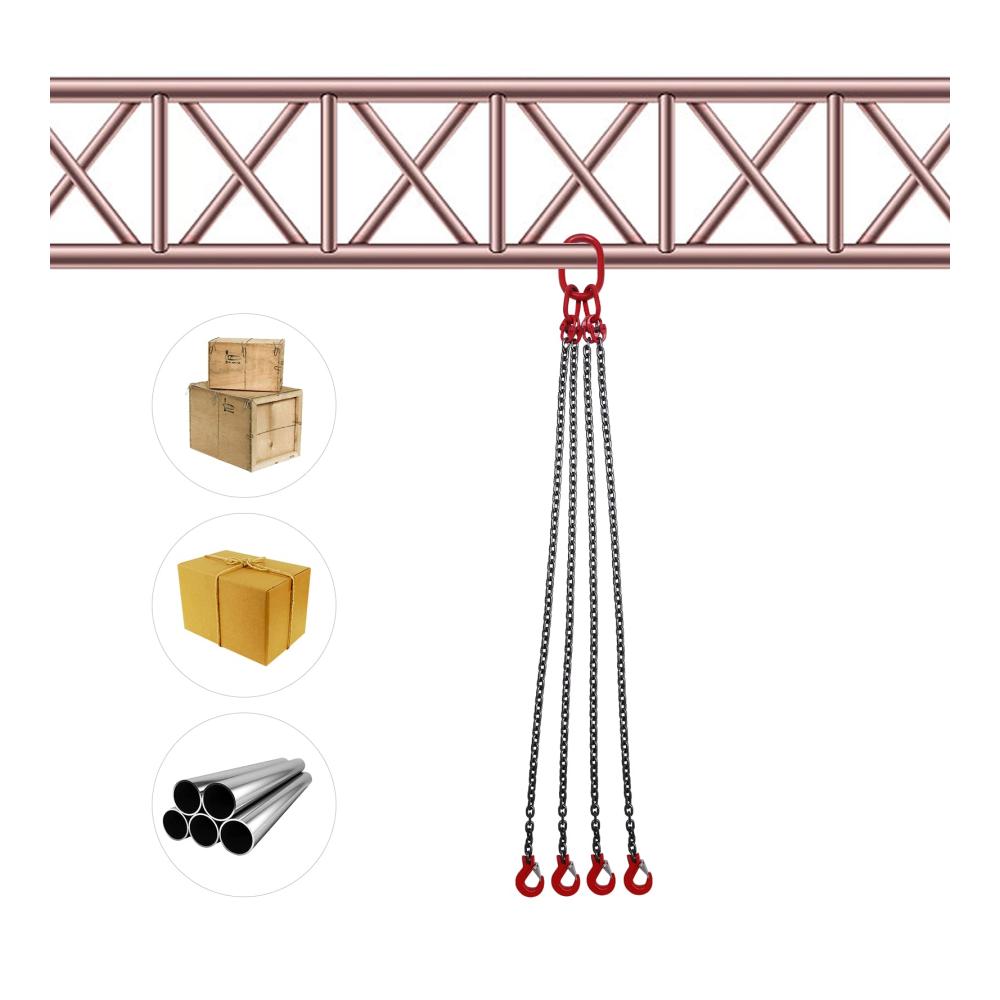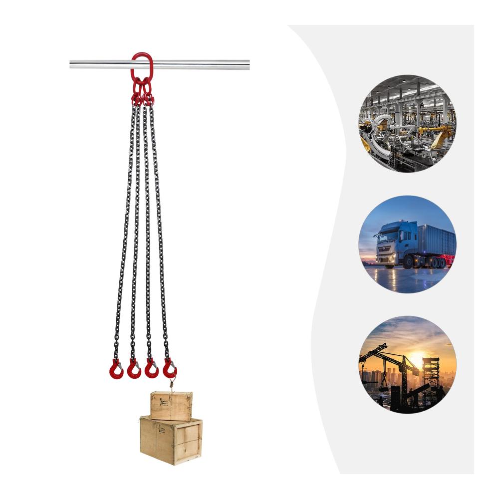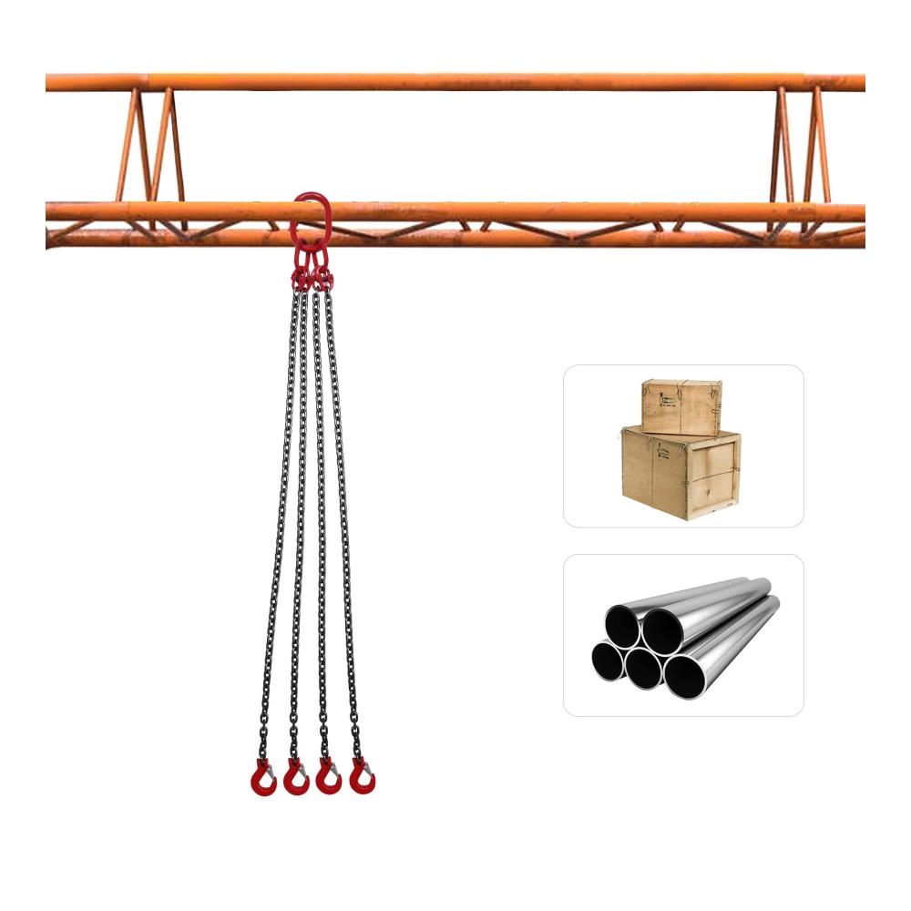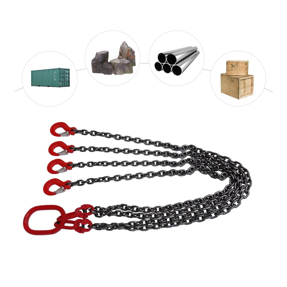 Hohe Standards: Unsere Kettenschlingen werden strengen technischen Tests unterzogen und erfüllen die relevanten technischen Standards. Große Tragfähigkeit: Diese Kettenschlingen haben eine Tragfähigkeit von 5T, und mit der harten Kette kann es eine Menge Waren tragen. Hohe Leistungsfähigkeit: Dieses Element kann viele schwere Gegenstände anheben, wodurch Ihre Arbeit zeitsparender und arbeitssparender wird. Dadurch wird Ihre Arbeitseffizienz höher sein. Stabil: Jeder Haken dieser Kettenschlingen hat einen Riegel, der die Ladung fest halten und die Ladung stabil halten kann. Die hochfeste Hebeschleife sorgt zudem für ein stabiles Heben. Breite Anwendung: Die Kettenschlingen sind weit verbreitet für das Anheben von Lasten in verschiedenen Bereichen und Unternehmen wie Minen, Maschinen, Häfen, Bau, Stahlwerke, Stahlrohrwerke, Benzinrohrinstallationsunternehmen, etc.