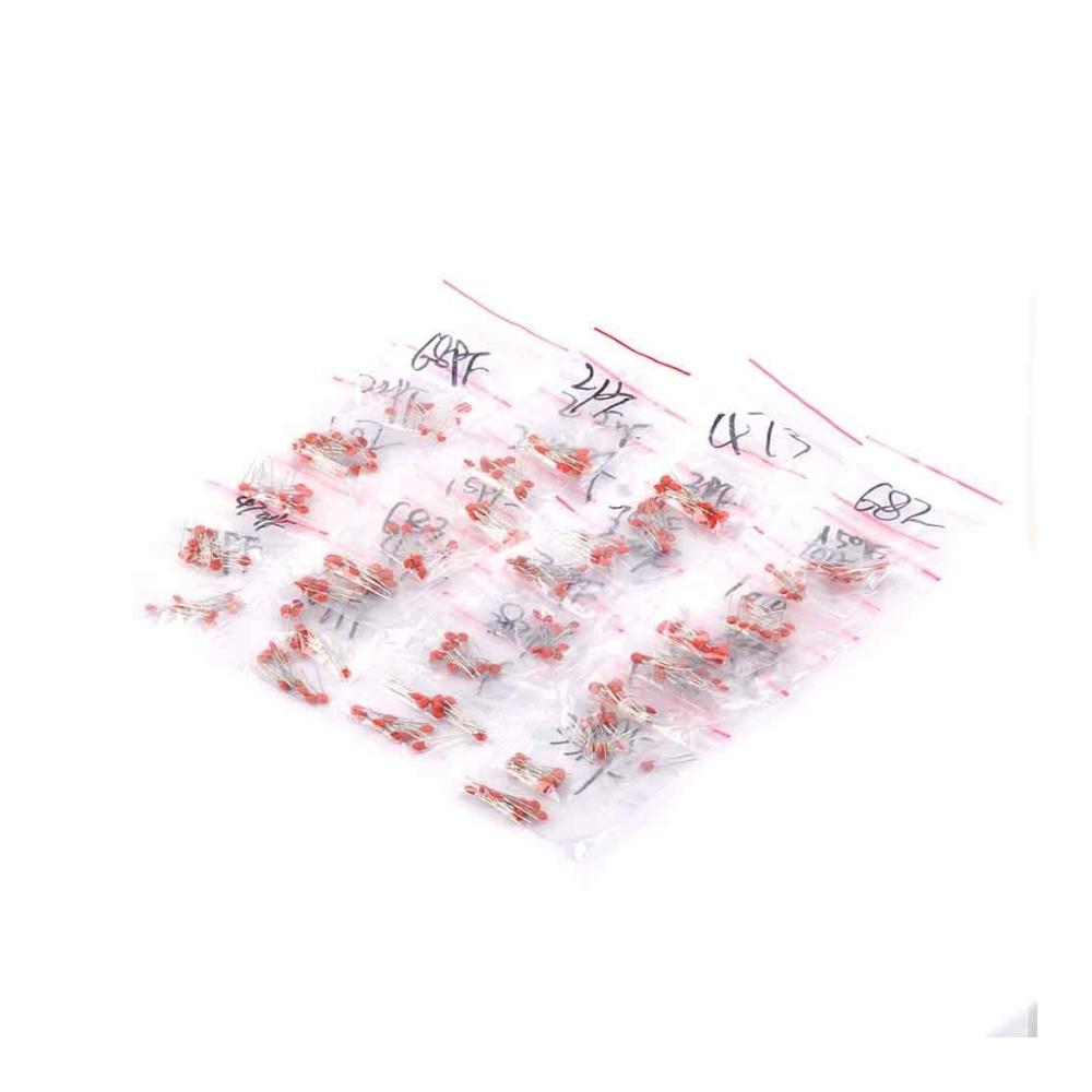 Keramik-Kondensatoren, 50 V, 2pf-0,1uF Durchgangslochmontage (30 Werte x 10 Stück = 300 Kondensatoren) Festes Keramik-Kondensator-Sortiment Set Ideal für DIY-Projekte. Lieferumfang: BR> 2P 3P 5P 10P 15P 22P 30P 33P 47P 68P 75P 82P 100P (101) 150P (151) 220P (221) 330P (331) 470P (471) 680P (681) 1NF(102) 1.5NF(152) 2.2NF(222) 3.3NF(332) 4.7NF(472) 6.8NF(682) 10NF(103) 15NF(153) 22NF(223) 47NF(473) 68NF(683) 100NF(104) Hochspannungs-Keramik-Kondensatoren-Sortiment-Set. 1. Spannungsfestigkeit: 1 kV, 2 kV, 3 kV. 2. Kondensator-Toleranz: ± 20 %. 3. Struktur: Feste Kondensatoren 4. Menge: 15 Werte x 20 Stück = 300 Stück. 5. Kondensatorbereich: 100pF/220pF/470pF/560pF/680pF/1000pF/1500pF/2200pF/3300pF/4700pF/1000pF/22000pF. Eigenschaften: Kondensator-Toleranz: ± 20 %. (01) Struktur: Feste Kondensatoren (02) Markierungscode auf jedem Kondensator (03) Hohe Zuverlässigkeit Betriebstemperatur: -25 bis 85 Grad C Das Set enthält 15 gängige Werte, 20 Stück pro Wert, insgesamt 300 Stück. Lieferumfang: 3 kV : 120 Stück. (01) 0,1 nF ——-(101) ———20 Stück. (02) 0,22 nF —–(221) ———20 Stück. (03) 1nF———(102)———20 Stück. (04) 2,2 nF ——-(222) ———20 Stück. (05) 4,7 nF ——-(472) ———20 Stück. (06) 10nF ——–(103)———-20 Stück. 2 kV : 120 Stück. (07) 0,47nF ——–(471)———-20 Stück. (08) 0,56 nF ——–( 561) ———-20 Stück. (09) 0,68nF ——–(681)———-20 Stück. (10) 1nF————(102)———-20 Stück. (11) 1,5 nF———-(152)———-20 Stück. (12) 3,3 nF ———-(332)———-20 Stück. 1 kV : 60 Stück. (13) 2,2nF ———-(222)———-20 Stück. (14) 10nF ———–(103)———-20 Stück. (15) 22nF———–(223)———-20 Stück.