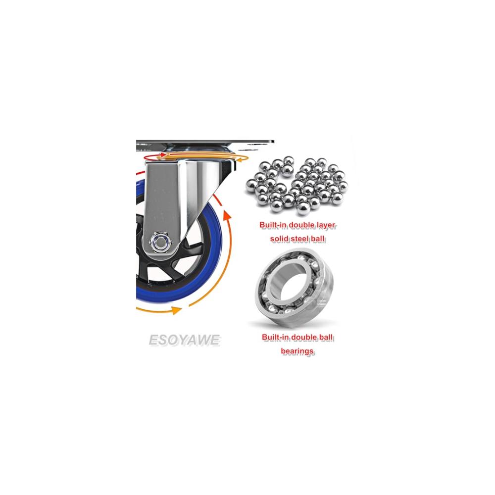 【Lenkrollen】 In die Rollen sind Doppelkugellager doppelte massive Stahlkugeln eingebaut, sodass die Rollen leicht und reibungslos rollen und schwenken können, was den Verschleiß verringert und bei schwerer Last rechtzeitig auf die Lenkung reagiert