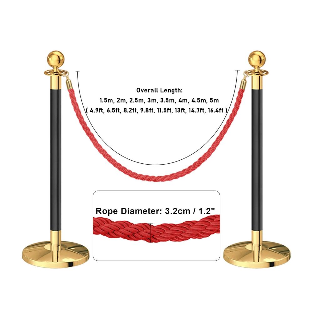 ● Braided Style: Nylon hemp rope. Superb twisted craftsmanship. The rope barrier will not easily fade even exposed under the blazing sun in outdoor. ● Elegant Sturdy Snap Hooks: Features chrome plated metal ends that allow you to connect to a or hang the rope up. Works with most of the rope posts on the market. ● Rope Size: Diameter of rope is 3.2cm ( 1.2&34; ). The length of rope with hook is 1.5m, 2m, 2.5m, 3m, 3.5m, 4m, 4.5m, 5m ( 4.9ft, 6.5ft, 8.2ft, 9.8ft, 11.5ft, 13ft, 14.7ft, 16.4ft ). ● Widely Used: Great for crowd control at movie theaters, grand openings, trade shows, car shows, concert venues, movie set props, red carpet events, theaters, museums, bank, shop, restaurants, hotels, and food service lines. ● Efficient Service: For any questions about the product, please feel free to contact us, we will be happy to provide you with satisfactory service within 24 hours! [ Tip: Posts are not included. ]
