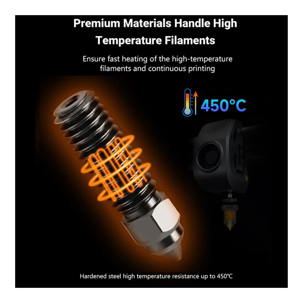 Vielseitige Anwendung: Es ist kompatibel mit PLA, ABS, PETG, TPE, TPU, PC und anderen sowie mit Schleifzusätzen verstärkten Verbundfilamenten wie Kohlefaser, Glasfaser, Stahl, Holz und Wolfram.
