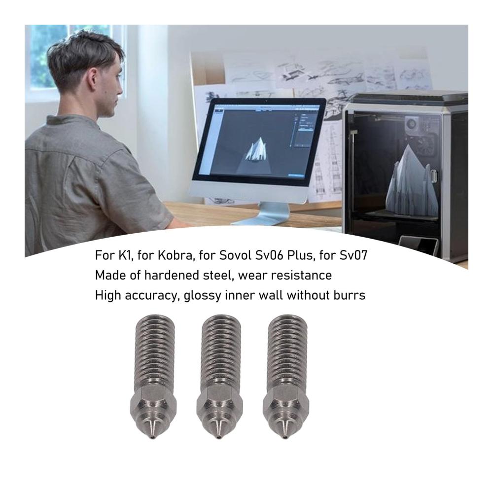 Breite Kompatibilität: Dieses 3D-Drucker-Düsen-Set ist ideal für K1, Kobra, Sovol Sv06 Plus und Sv07 Modelle. Es ist eine exzellente Wahl für den direkten Ersatz von alten oder beschädigten Düsen.