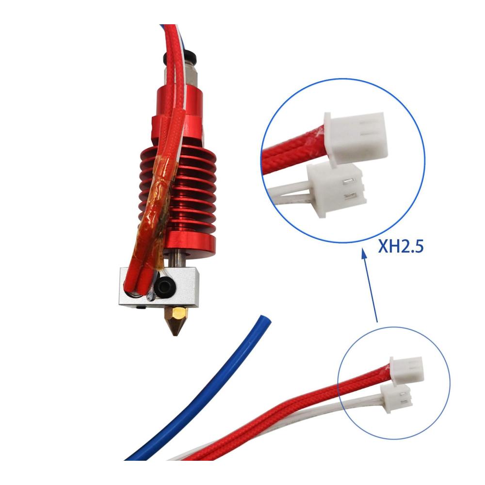 Extruder-Hot-End-Kit, der weiße Draht ist Temperatur-Thermistor, der rote Draht ist Heizrohr 24 V