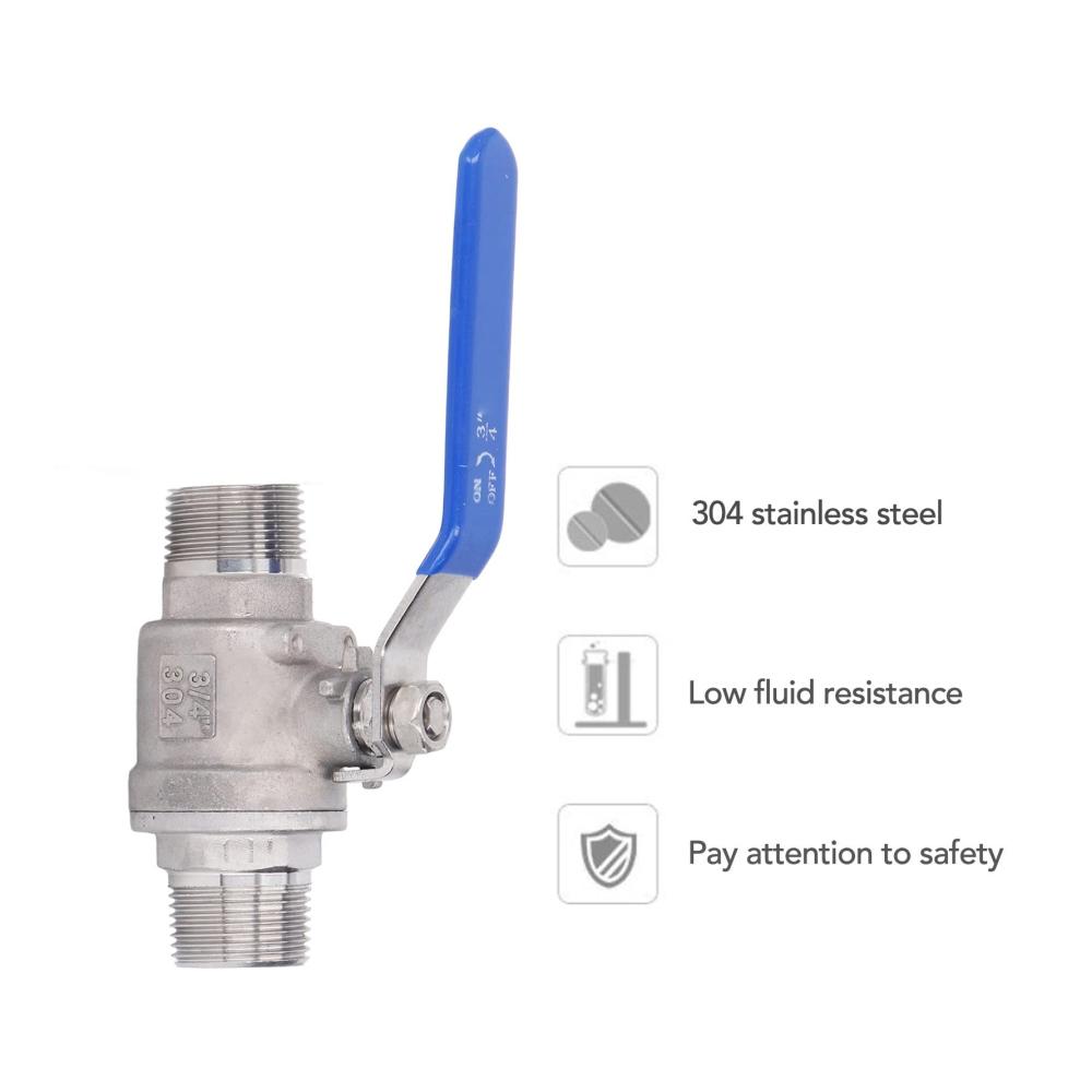 EINFACHE STEUERUNG: 3/4-Zoll-Edelstahl-Kugelhahngewinde mit robustem Griff, blaue Isolierung für schnelles Öffnen und Schließen. Für eine schnelle Steuerung einfach um 90° von vollständig geöffnet zu vollständig geschlossen drehen.
