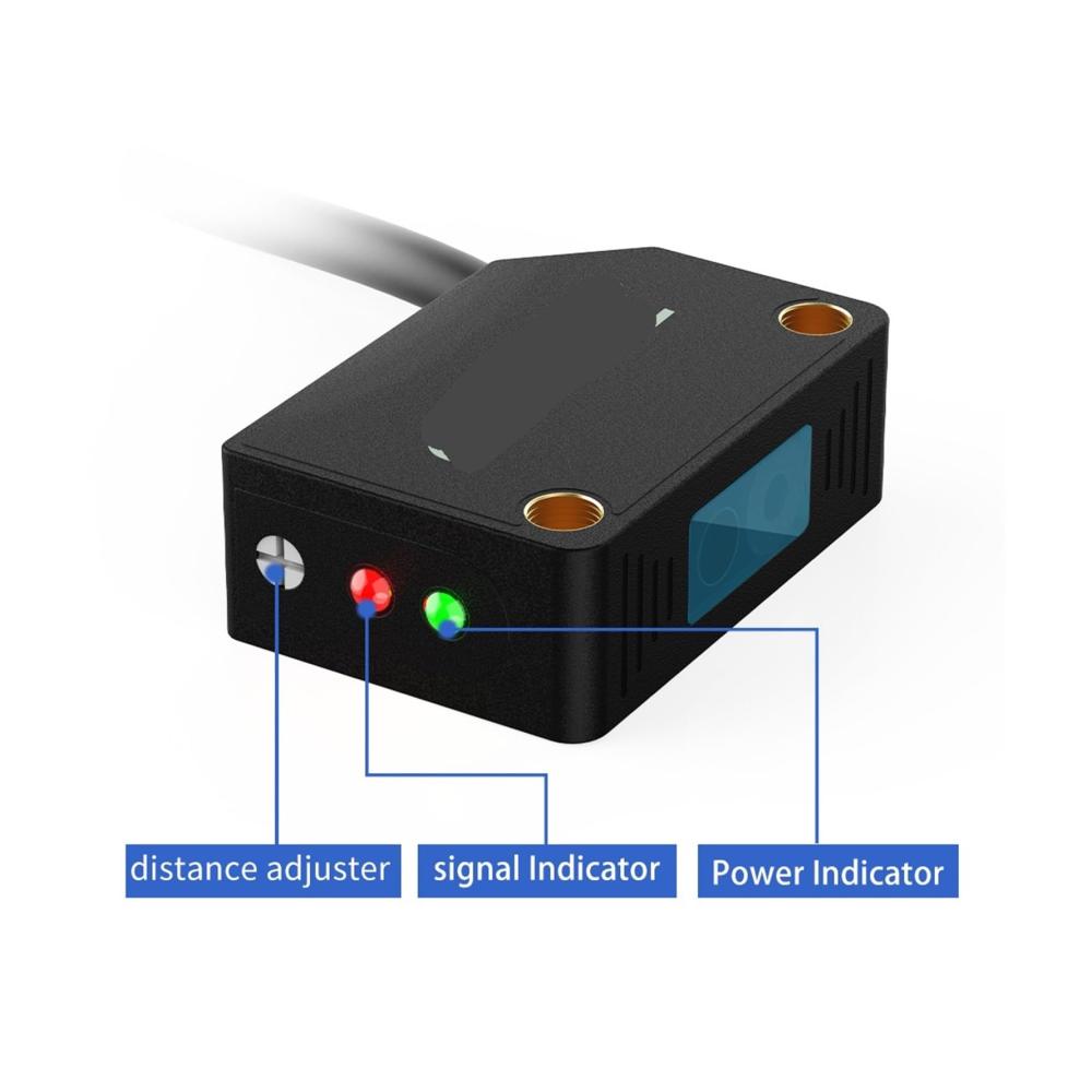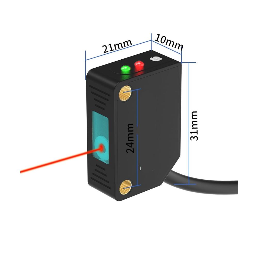 Fotoelektrische SensorenQuadratischer Laser-Lichtschrankensensor, diffuse Reflexion, sichtbares Licht, kleiner Fleck, NPN PNP 10–30 V DC, Infrarotstrahl-Lichtschranke