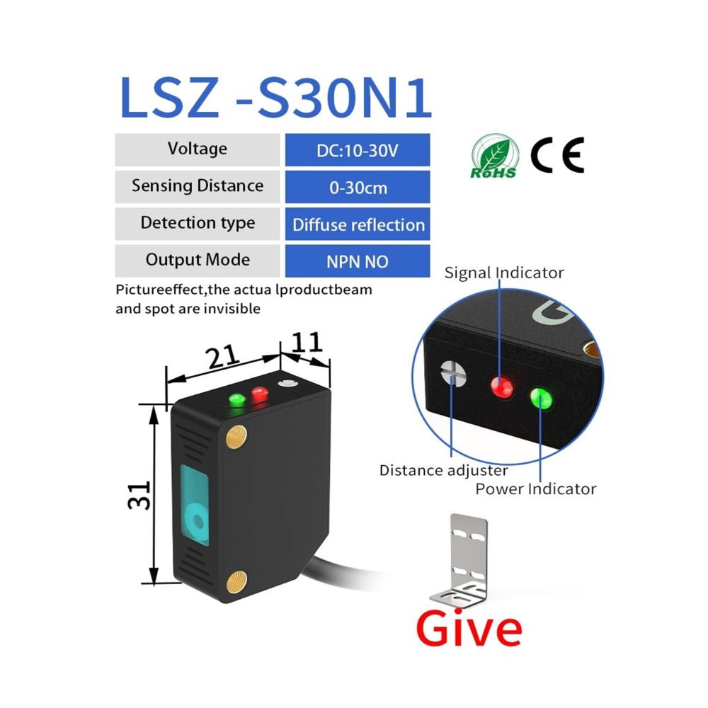 Be the first to review “Lichtschrankensensor Quadratischer Fotoelektrische Sensoren Infrarotstrahl NPN PNP 10–30 V DC sichtbares Licht diffuse Reflexion kleiner Fleck 30CM DC 3-wireNPN NO”