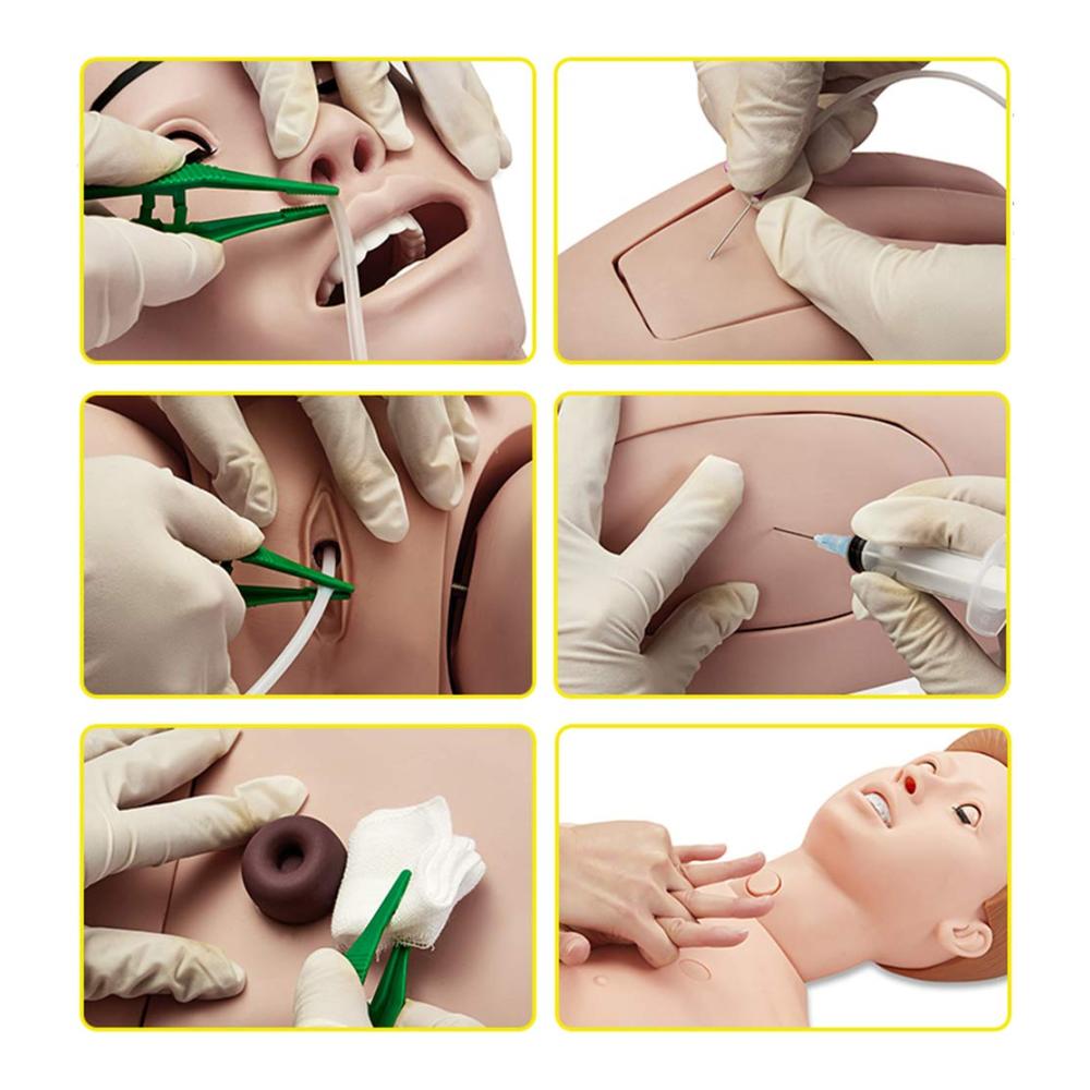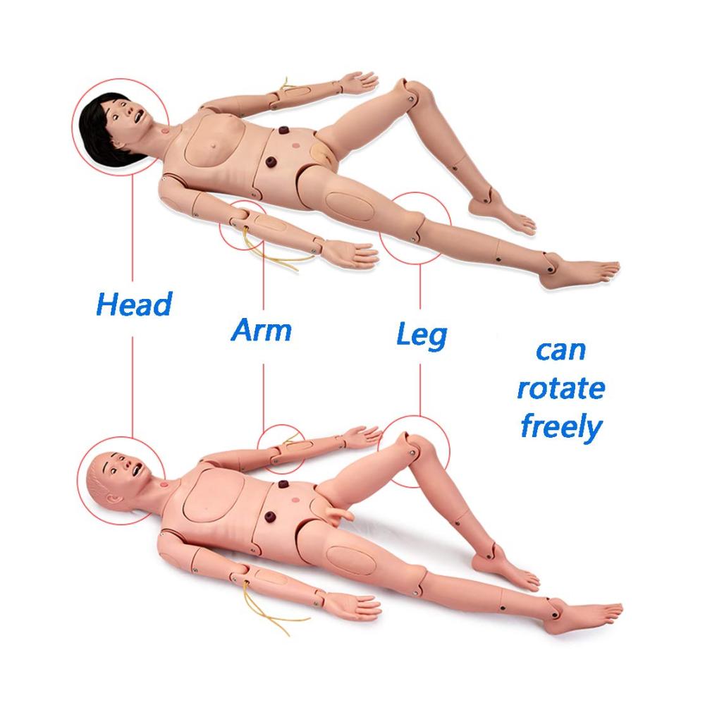 • Schulungsmaterial für die Krankenpflegeausbildung – Die Übungspuppe für Krankenpflegekompetenzen wird häufig als Lehrmittel verwendet und wird häufig in der Klinik-, Notfall- und Routineausbildung von Krankenschwestern eingesetzt. Diese voll ausgestattete Pflegepuppe ahmt die normale Körperhaltung und den Umfang der physiologischen Aktivitäten des menschlichen Körpers so weit wie möglich nach, was die pflegerische Ausbildung erleichtert