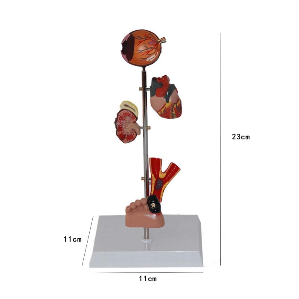 • ❥ Das Diabetes-Modell zeigt das Organ diabetischer Komplikationen, platziert auf der Basis, abnehmbare 5 Teile (Augapfel, Herz, Niere, Gefäß, Fuß), um die Hauptkomplikation des pathologischen Diabetes-Modells darzustellen.