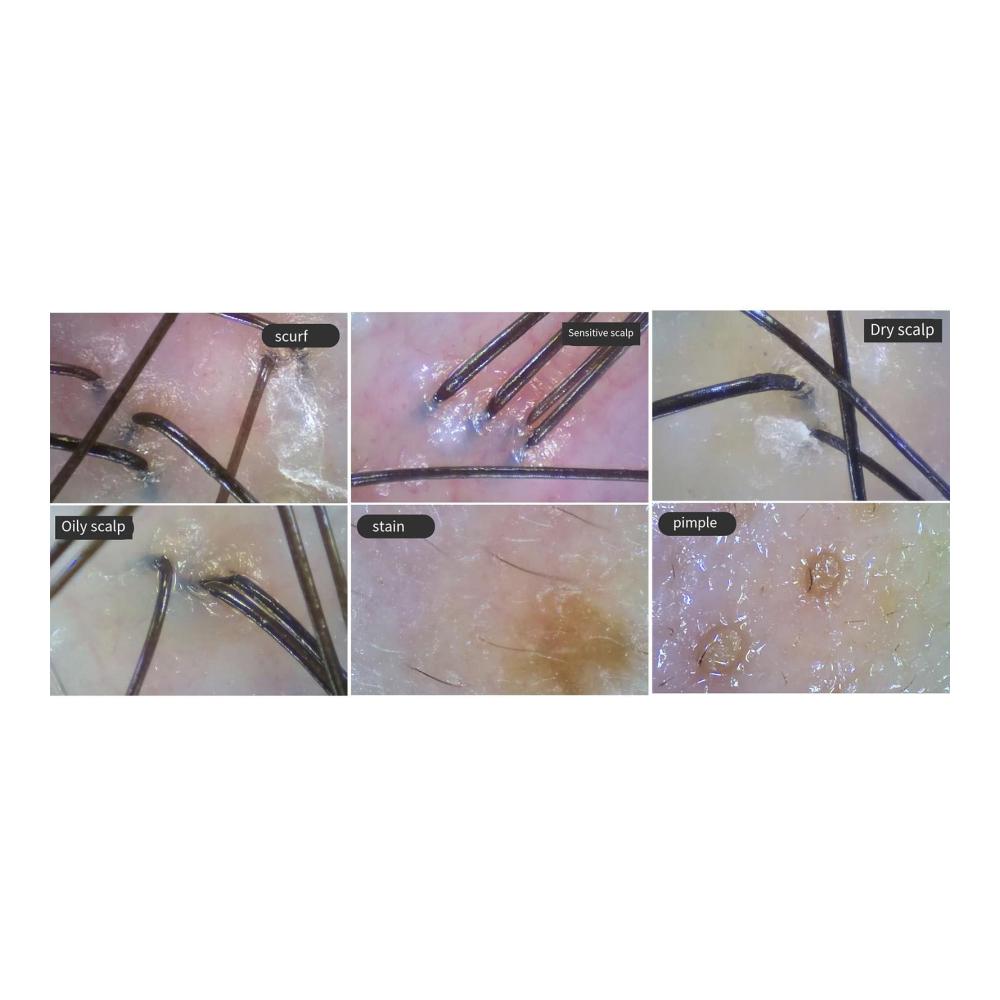 【200-fache Vergrößerung】 Wenn das menschliche Auge den winzigen Zustand von Haut, Haaren und Haarfollikeln sehen möchte, kann es die Situation durch Vergrößerung klarer erkennen. 200-faches Objektiv zur Haarerkennung, 8 Millionen Pixel, hohe Wiederherstellung, hochauflösende Bildgebung.