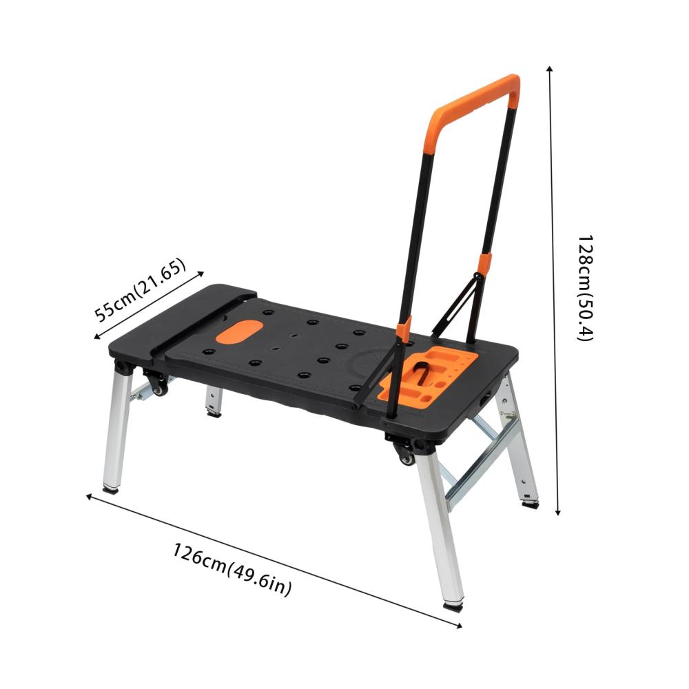 【Multifunktionalität】Das 7-in-1-Design ermöglicht es der Werkbank, mehrere Funktionen zu haben, einschließlich Werkbank, Sägerahmen, Arbeitsplattform, Plattform, Rollbrett, Transportwagen und Handwagen, usw., die mehrere Arbeitsanforderungen erfüllen und Platz und Kosten sparen können. 【Hohe Belastbarkeit】Die Werkbank hat eine hohe Belastbarkeit. Die maximale Tragfähigkeit von Werkbank und Sägerahmen beträgt 150 kg und die maximale Tragfähigkeit von Werkbank und Plattform 250 kg, wodurch die Werkbank eine Vielzahl von schwereren Arbeitsmaterialien und Gegenständen bewältigen kann. 【Schnelles Umrüsten】Die Werkbank lässt sich schnell in verschiedene Funktionsformen umwandeln und ermöglicht so einen einfachen Wechsel zwischen verschiedenen Arbeitsszenarien. Ob Sie nun Holz sägen und schneiden, Gegenstände heben oder Renovierungs- und Wartungsarbeiten durchführen, Sie können die Form der Werkbank leicht an die verschiedenen Aufgaben anpassen. 【Flexible Einstellung】Die Höhe der Werkbank kann flexibel an Ihre Arbeitsanforderungen und Ihre persönliche Körpergröße angepasst werden, so dass Sie bequem und komfortabel arbeiten können. 【Breite Palette von Anwendungen】Es kann für eine Vielzahl von Arbeiten wie Hauswartung, Renovierung, Holzbearbeitung, Gartenarbeit und so weiter verwendet werden.
