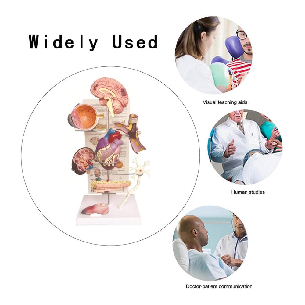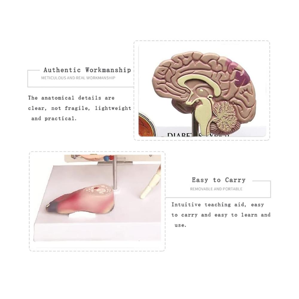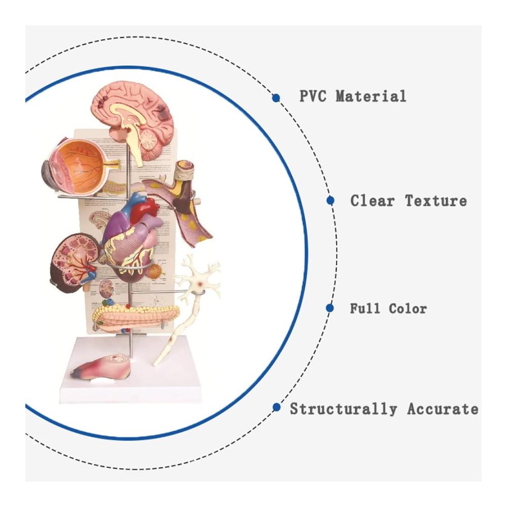 MATERIAL: Dieses Diabetes-Aufklärungsmodell ist ein medizinisches Diabetes-Komplikationsmodell beim Menschen. Es besteht aus umweltfreundlichem PVC und ist exquisit verarbeitet. ENTFERNBARES DESIGN: Es umfasst Nachahmungen von Organen von oben bis unten, wie z. B. die vergrößerten Arterien des Gehirns, des Auges, des Herzens und der Niere, die einen direkten Blick auf die allgemeine Struktur menschlicher Organe ermöglichen und zur detaillierten Untersuchung gedreht und zerlegt werden können. FUNKTION: Das Diabetes-Modellset eignet sich perfekt zur Patientenaufklärung in einer Arztpraxis oder einer Gesundheitseinrichtung. Es kann auch als Lehrerzubehör für Unterrichtsvorführungen verwendet werden. Verwenden Sie es anstelle eines Anatomieposters. BEHANDLUNGSHILFEWERKZEUG: Unsere anatomischen Modelle helfen bei der effektiven Patientenaufklärung. Der taktile und beschreibende Charakter hilft Patienten, ihre Beschwerden und Behandlungspläne besser zu verstehen. Dadurch kann die Patientencompliance deutlich gesteigert werden. KUNDENDIENST: Wenn Sie Fragen oder Unzufriedenheit mit dem Diabetes-Modell haben, bieten wir 24 Stunden Online-Kundendienst an, um alle Ihre Probleme so schnell wie möglich zu lösen.