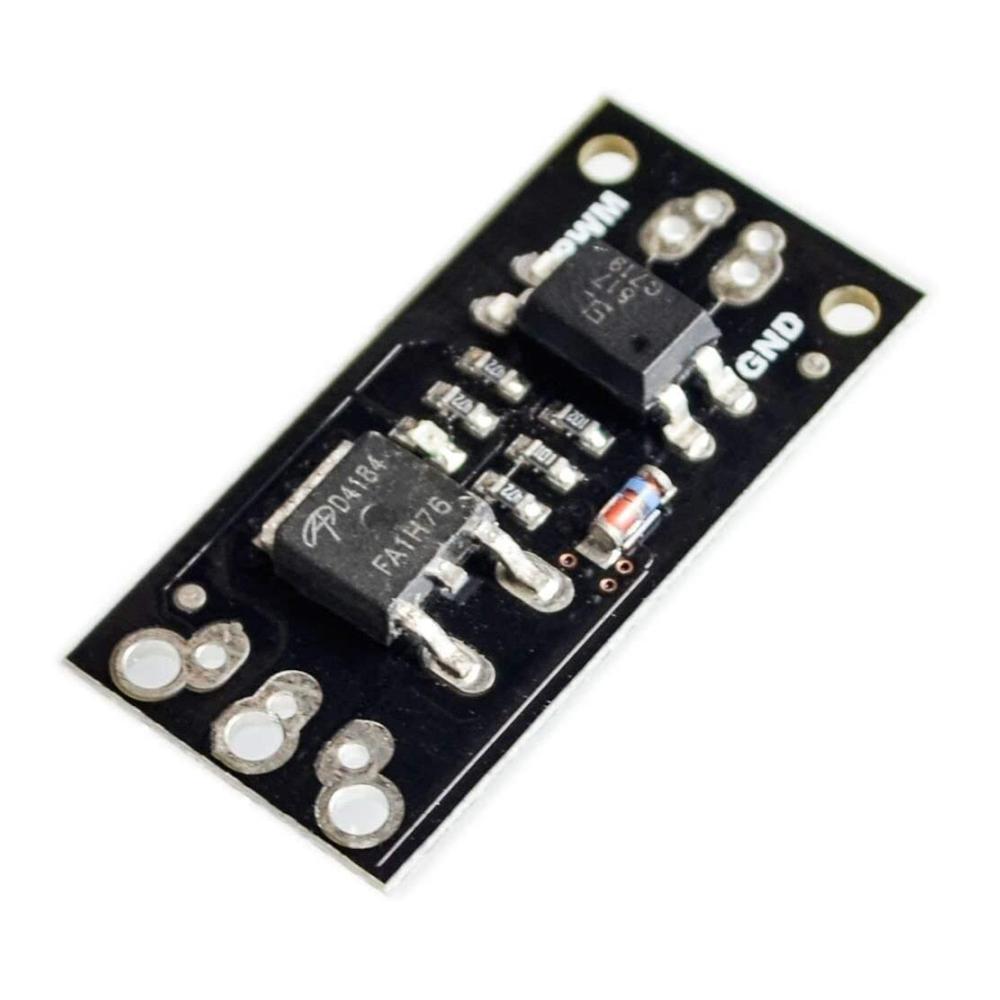 Mit der entkoppelten Isolation werden das Steuersignal und die gesteuerte Ausrüstung isoliert, was die Störung stark erhöht. High Level Start, Low Level Stop, PWM Speed Adjustment Es ist weit verbreitet in der Steuerung von Elektromotoren und Stopp, elektromagnetischen Ventilen und anderen Tributargeräten. Die Signaleingangsseite kann die Klemme oder den Pin löten und ist kompatibel mit dem Brotbrett. Ausgang kann gelötet werden Terminal oder direkte Schweißleitung. Die Modulgröße 23 mm x 16 mm hat zwei Schraubenlöcher mit 2 mm Durchmesser und der Lochabstand beträgt 8 mm. Lieferumfang: 5 x Feld-Effektmodul.