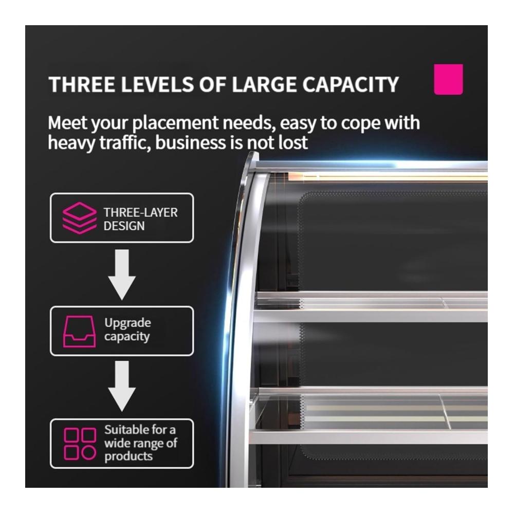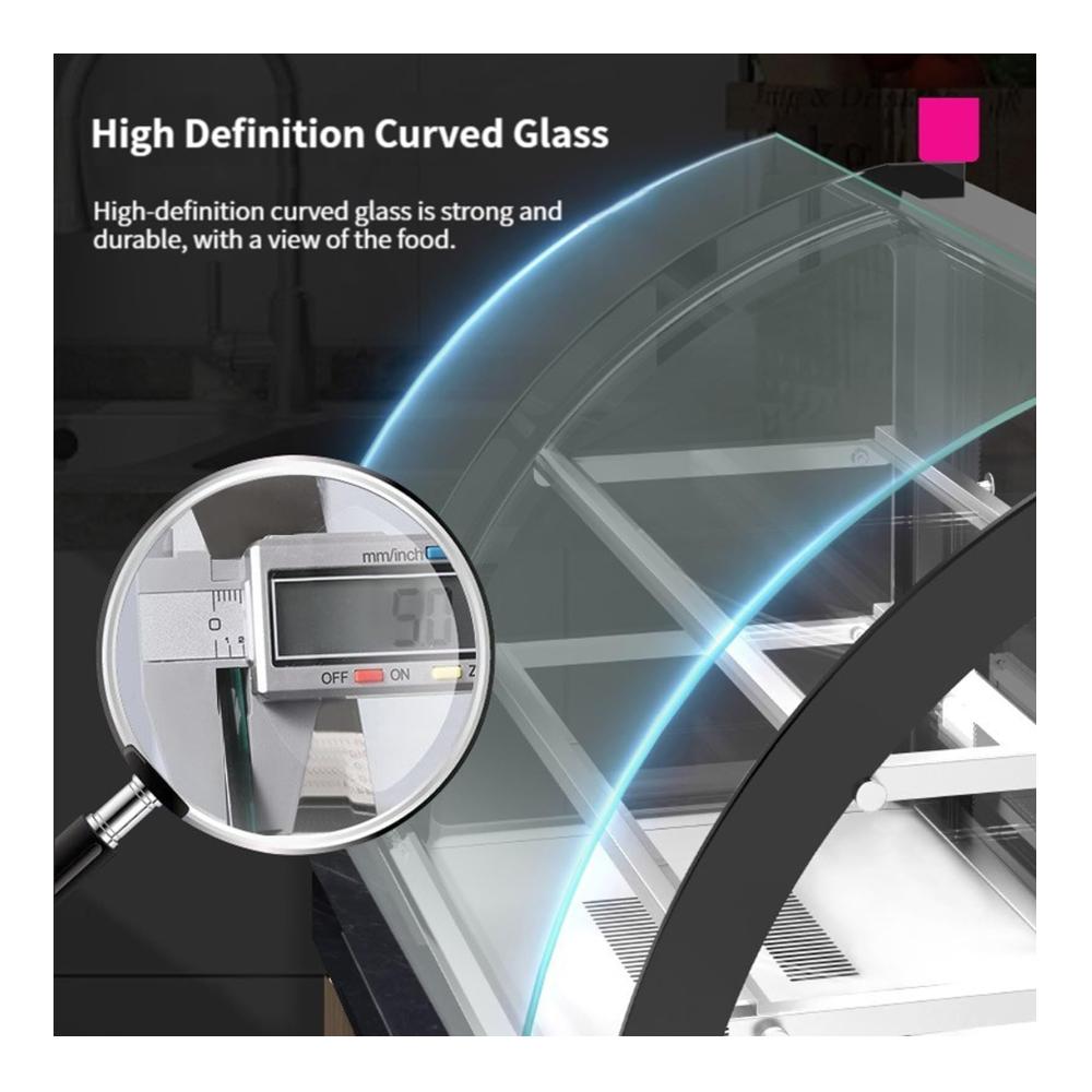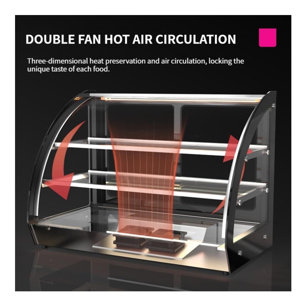 【Erhöhen Sie Impulskäufe mit einem auffälligen Display.】 Erregen Sie die Aufmerksamkeit Ihrer Kunden mit der hellen LED-Beleuchtung und dem vierseitigen Glasdisplay dieses Aufsatz-Wärmeschranks. Stellen Sie es an die Kasse und beobachten Sie, wie die köstlichen Leckereien aus den Regalen fliegen.