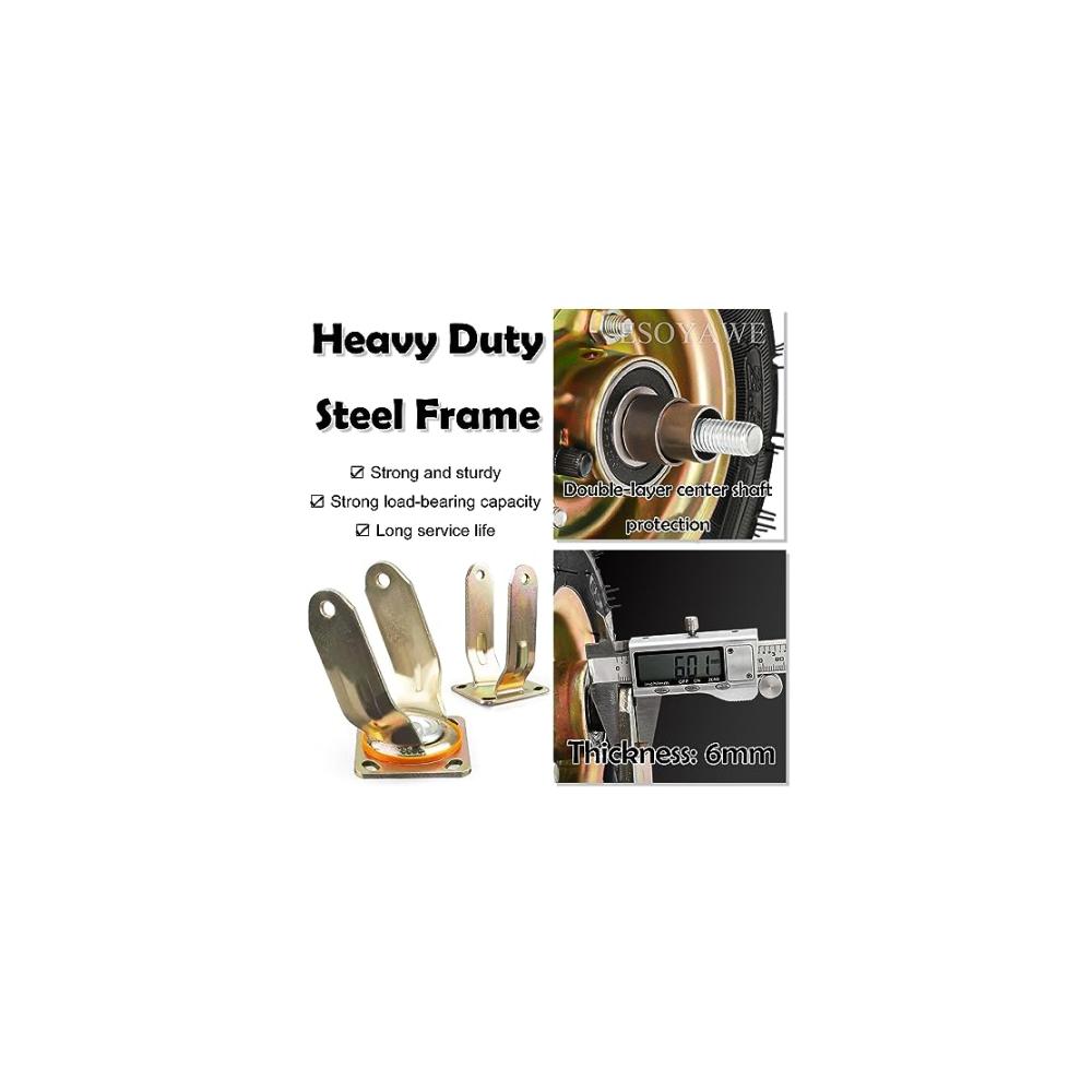 ♥ Langlebiges Material: Hochleistungsrollen bestehen aus einer Kombination aus pneumatischen Gummireifen und 6 mm dicken Hochleistungsstahlplatten, die langlebig, verschleißfest und rutschfest, stoßdämpfend und puffernd sind und den Boden nicht verletzen. haben eine starke Tragfähigkeit und eine lange Lebensdauer. Es kann sich an verschiedene Arten von Straßenoberflächen anpassen