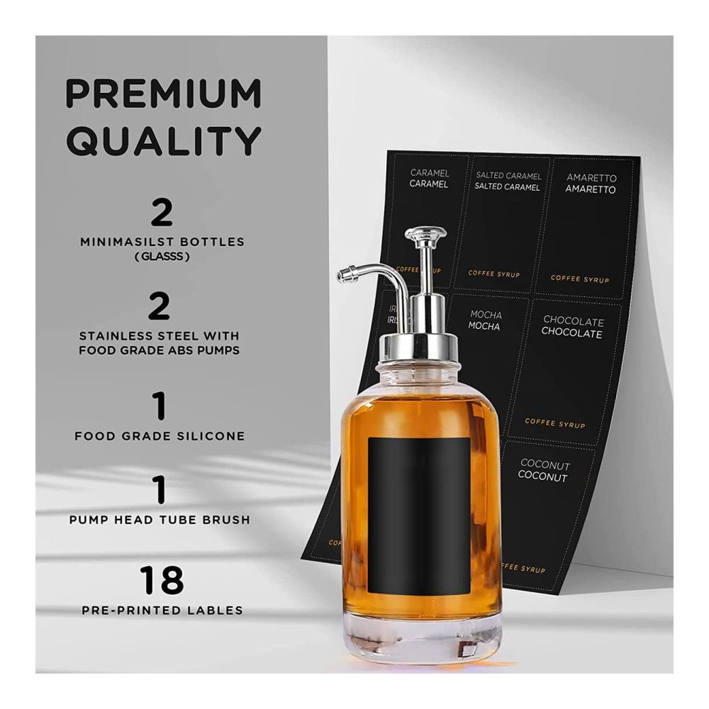 [Kommerzieller oder häuslicher Gebrauch] Dieser Kaffeesirup -Spender set delikat und minimalistisch, was sowohl für die kommerzielle Verwendung als auch für die Heimnutzung geeignet ist.Wie Restaurant, Café, Bar, rasiertes Eis.Und eine perfekte Mundwasserflasche, Olivenölflasche für Badezimmer oder Küche..