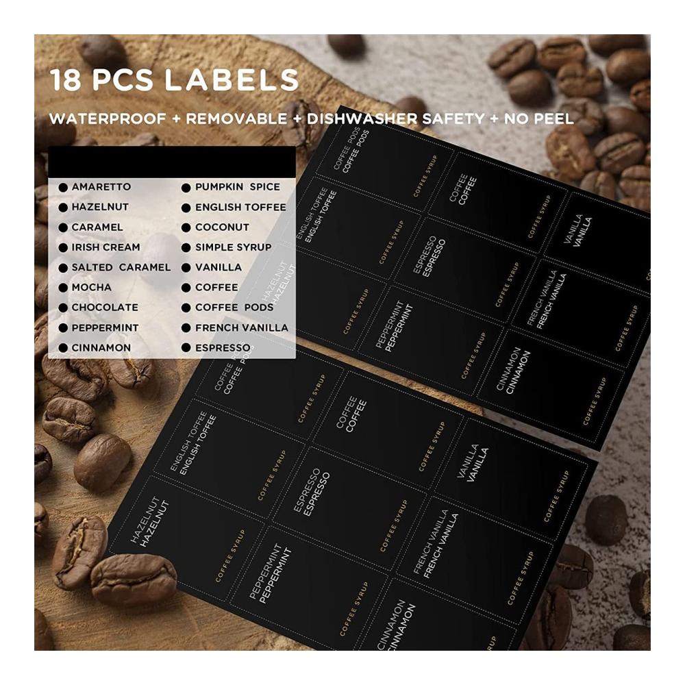 [Empfindliche Etiketten für Home Coffee Bar] Diese Kaffeesirup -Etiketten bieten ein einfaches Design mit klassischem Schwarz.Mit diesen Etiketten wird der Kaffeesirupbehälter eleganter und passt zu verschiedenen Arten der Kaffeebardekoration..