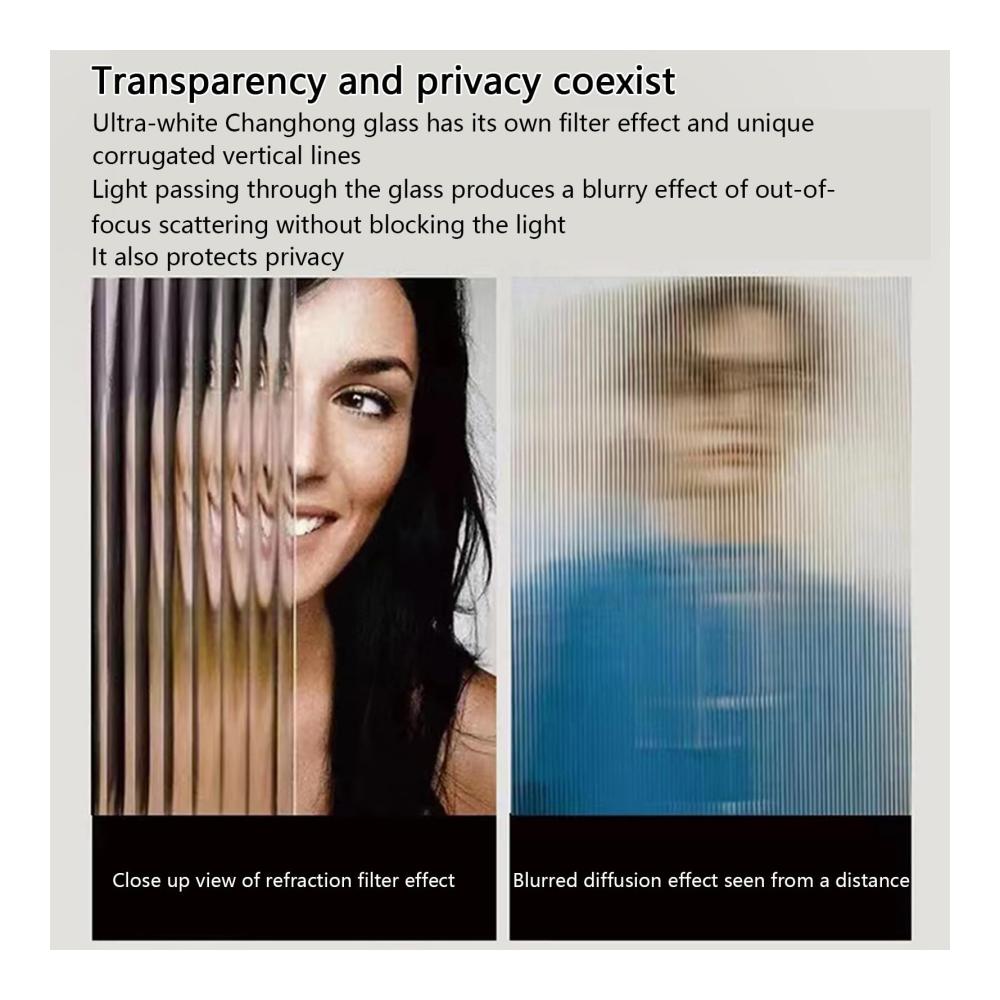 【PRIVATSPHÄRE-BILDSCHIRM】Erstellen Sie ein zartes, durchscheinendes Texturdesign auf der Außenfläche des Glases, das die Sichtlinie vollständig blockiert, aber weiches, diffuses Licht problemlos durchlässt. Die durchscheinende Textur ist außerdem vollständig gegen Fingerabdrücke geschützt.
