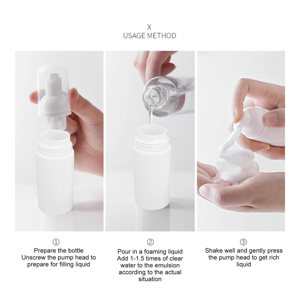 【Praktisch】Ergonomisches Design, handliche Größe, kompakt und praktisch. Flasche vorbereiten, Pumpenkopf abschrauben, Füllflüssigkeit in die Aufschäumflasche dosieren, Pumpenkopf aufschrauben und einfach verwenden.