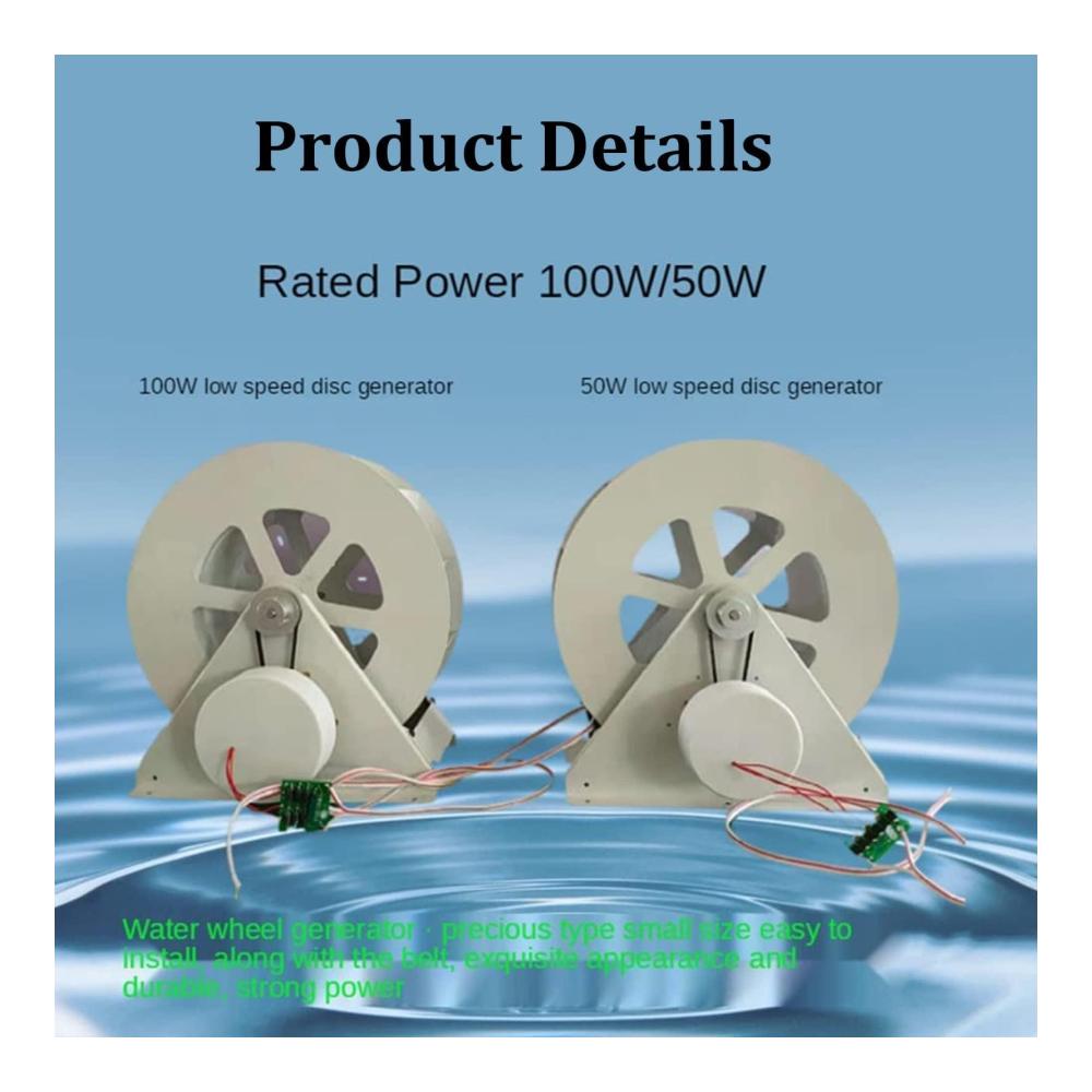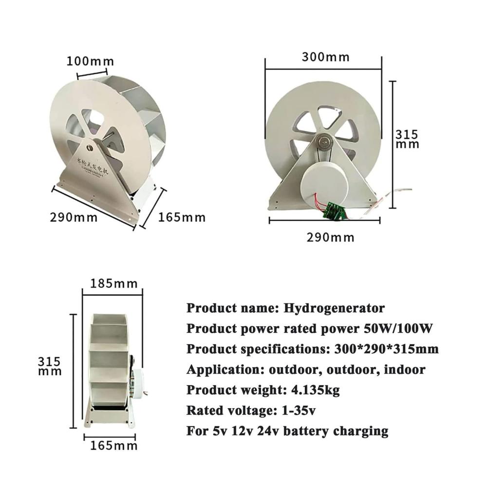 Nach dem Prinzip und Aufbau des Wasserrades wurde ein Wasserradgenerator entwickelt. Das Wasserrad ist mit einem geräuschlosen Riemenantrieb ausgestattet. Antriebsgenerator, niedrige Drehzahl und hohe Leistung.★ EIGENSCHAFTEN VON WASSERELEKTRISCHEN GENERATOREN:– Das Erscheinungsbild wird durch die dreieckige Wasserradplatte fixiert, die Stahlplatte ist stabil und langlebig; Die Lackierung ist korrosionsbeständig und korrosionsbeständig!– Der Generator stellt geringe Anforderungen an den Wasserdurchfluss, ein kleiner Durchfluss kann ein großes Drehmoment erzeugen, synchrones Übersetzungsverhältnis (3:1)– Es kann für die Stromversorgung im Freien für Außenlandschaften, Stromversorgungsgeräte für die Außenbeleuchtung, Stromversorgungsüberwachung, Stromversorgung für Basisstationen, zum Aufladen von Mobiltelefonen und für andere elektronische Geräte verwendet werden!– Das Wasserboot galoppiert im Fengshui, kann als Kulisse, zur Stromversorgung und als Lehrmaterial für Grund- und weiterführende Schulen für Schüler verwendet werden. Nehmen Sie an technischen Wettbewerben teil.★ PRODUKTBESCHREIBUNG:● Name: Hydrogenerator/Low-Speed-Scheibengenerator● Produktleistung: Nennleistung 50 W/100 W● Nennspannung: 1–35 V für 5 V–12 V–24 V Batterieladung.● Einsatzbereich: Outdoor, Indoor● Produktgröße: 300 x 290 x 315 mm● Produktgewicht: 4,2 kg★ PAKET ENTHÄLT:1 x Wasserturbinengenerator1 x Benutzerhandbuch★ HINWEIS:1. Wenn Sie Fragen oder Bedenken zu unseren Produkten haben, können Sie sich gerne an uns wenden. Wir werden Ihr Problem innerhalb von 24 Stunden lösen.2. Wir sind bestrebt, jedem Kunden die besten Produkte und Dienstleistungen anzubieten.