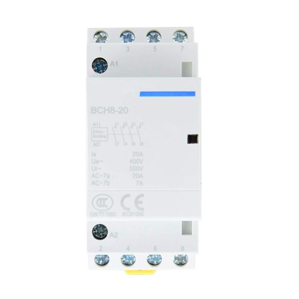AC-Schütz 4-polig 4NO 20A 24V 220V/230V 50/60Hz Wechselstromschütz für Haushalt DIN-Schienenmontage (24V) mit Zusatzfunktion [Long-Tail-Key einfügen]