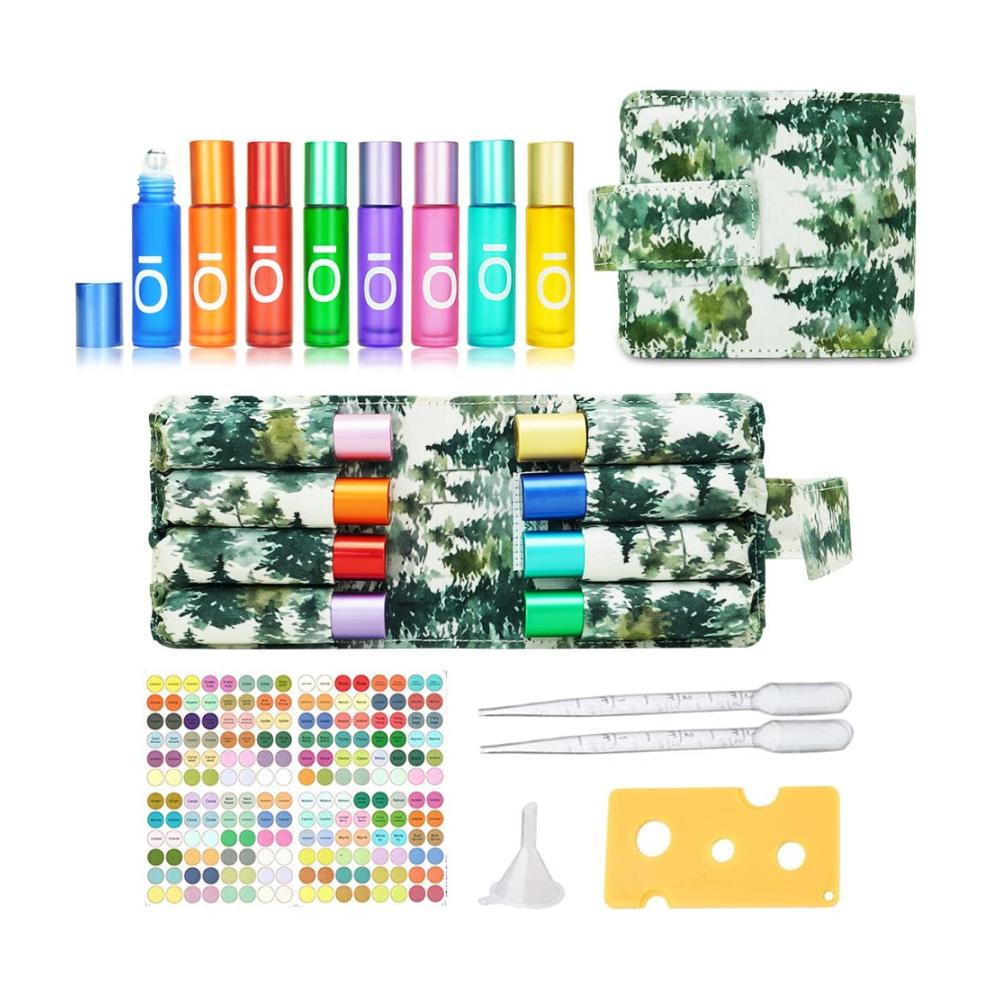 Duftglas Roll-On-Flaschen Set | 8 Stk. 10ml Glasflaschen mit Edelstahl Kugel | Ätherische Öl Rollflaschen inkl. Tragetasche | Leere Roll-On-Fläschchen für einfaches Befüllen und Tragen | Aromatherapie Zubehör für Unterwegs